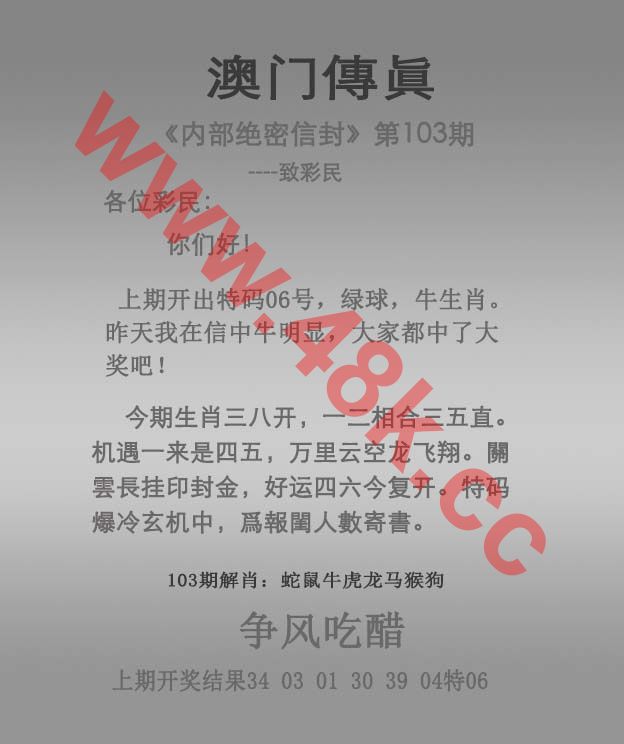 103期: ④肖 狗兔猴牛 ????中